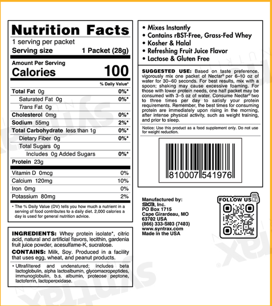Welcome to the critically acclaimed world of Nectar! Gone are the days of low-quality whey protein. Gone are the days of those blah-tasting protein drinks that promise much but deliver little. Nectar® once and for all breaks the mold by combining Promina™, the highest-quality whey protein isolate ever developed, with a flavoring system so fruitilicious that you will never again drink a different whey protein shake.
