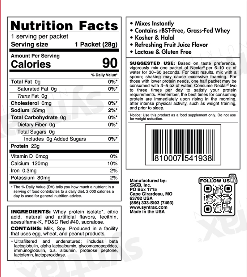 Moreover, Syntrax did something unique by engineering Nectar® to be so delicious that you can eat it right out of the container. Imagine putting a protein powder in your mouth and it tasting like candy. Imagine this protein powder having ZERO carbs and ZERO fat. Stop imagining! We’ve brought you Nectar®!